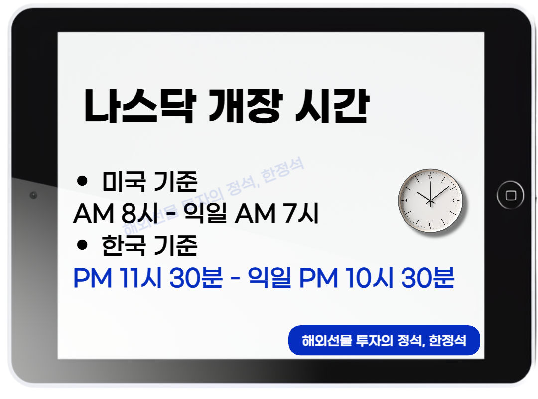 NASDAQ이 거래되고 있는, CME 거래소의 개장 및 폐장 시간은 다음과 같습니다.