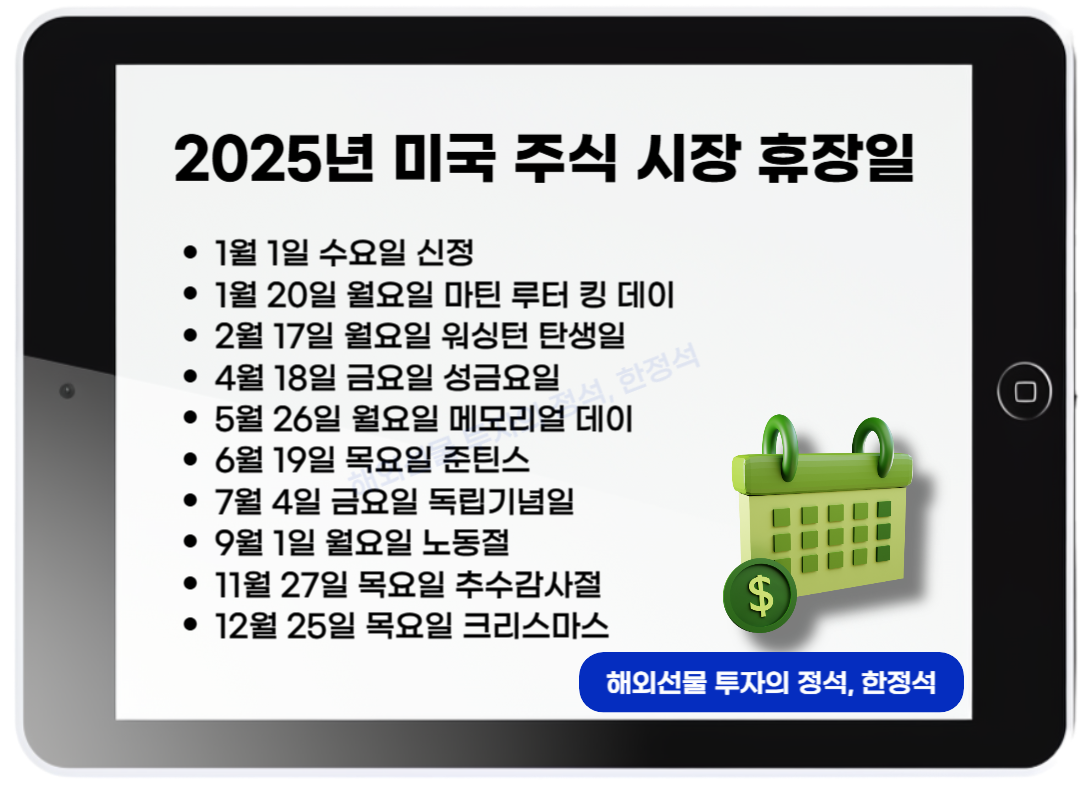 새해 투자 계획, 세우셨나요? 성공적인 투자를 위해서는 2025년 미국 주식 시장의 휴장일과 거래 시간을 미리 확인하는 것이 필수겠죠!